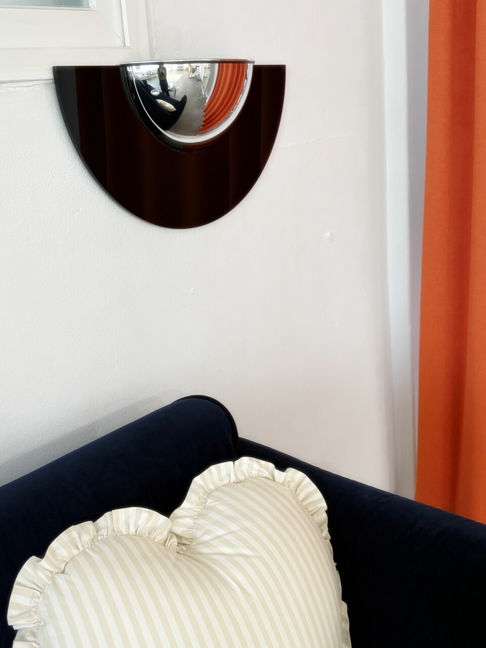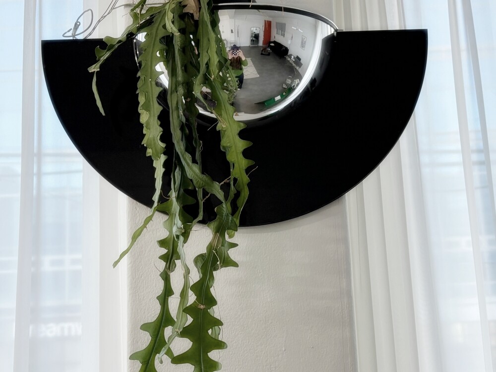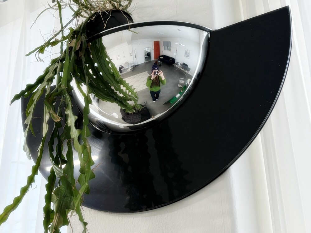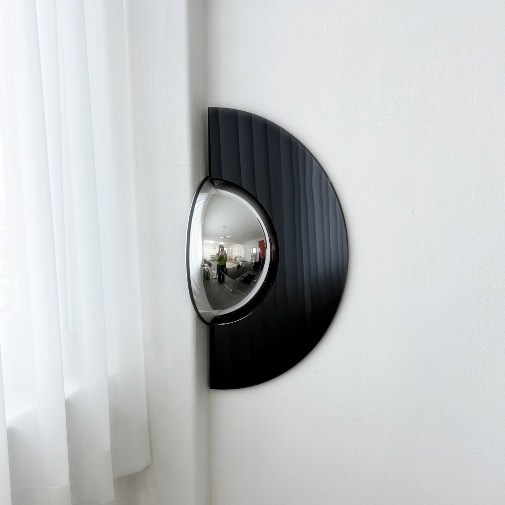 볼록거울 안쪽의 넓은 홈에 오브제를 담아 설치할 수 있습니다.