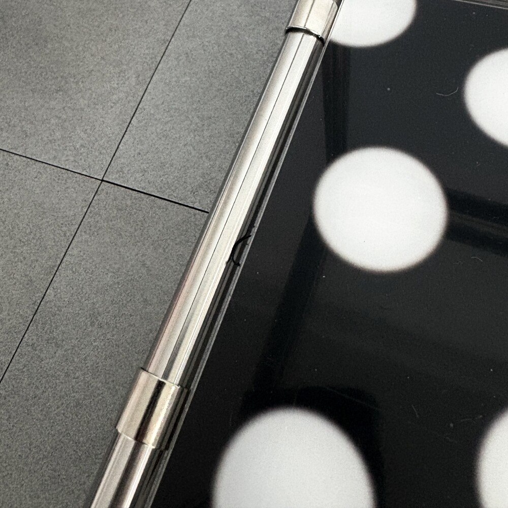 스테인리스 앵글과 아크릴/유리 사이에 미세한 틈이 존재합니다