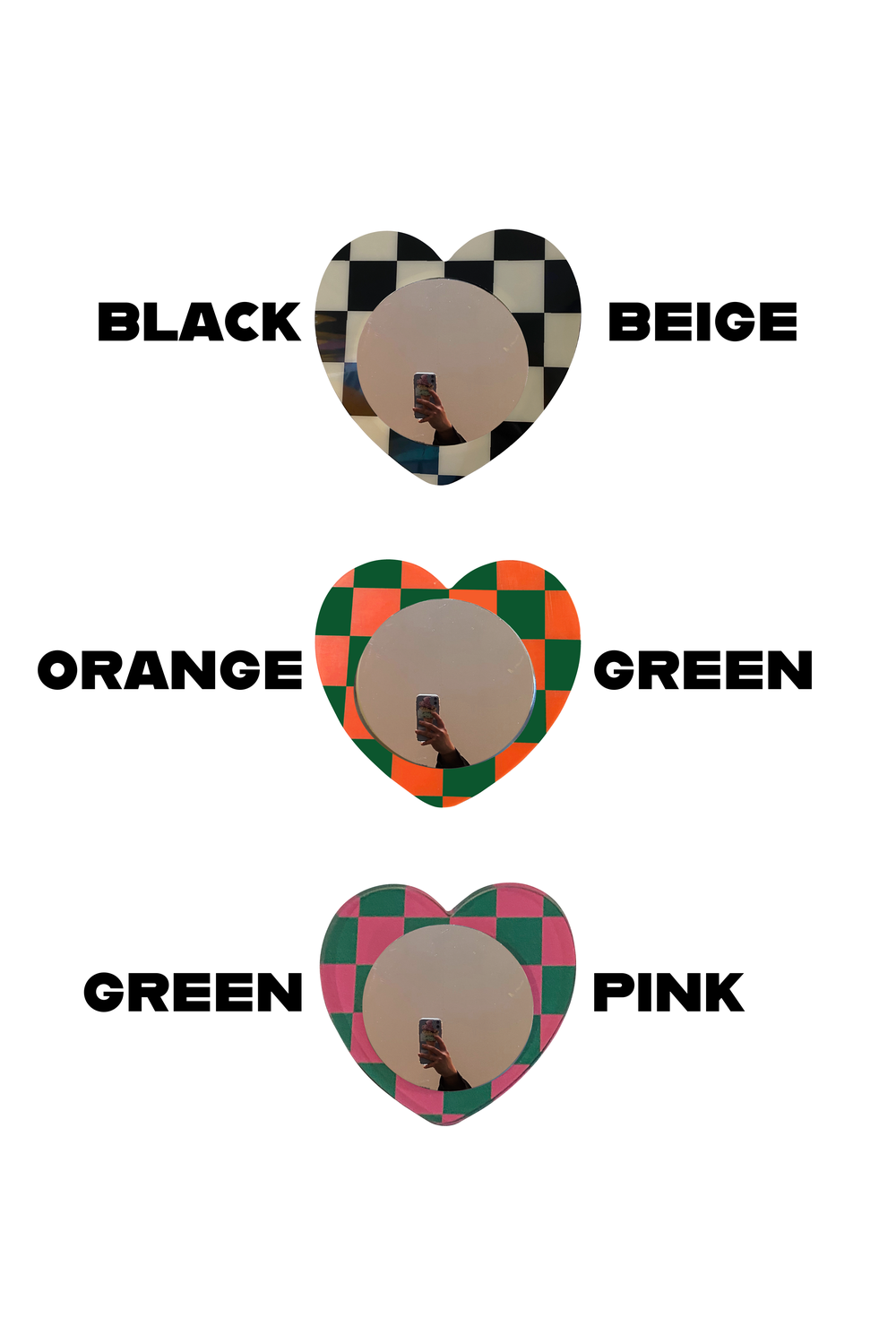 Heart Acrylic Mirror (Checkerboard / Stripe)