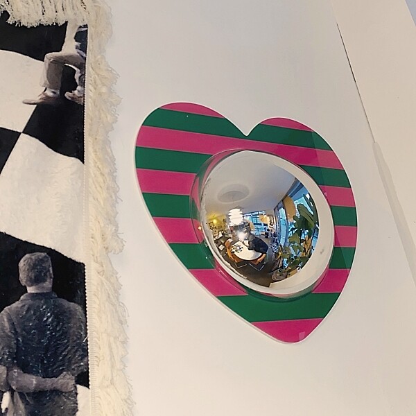 하트모양의 아크릴 틀에 볼록 거울을 더해